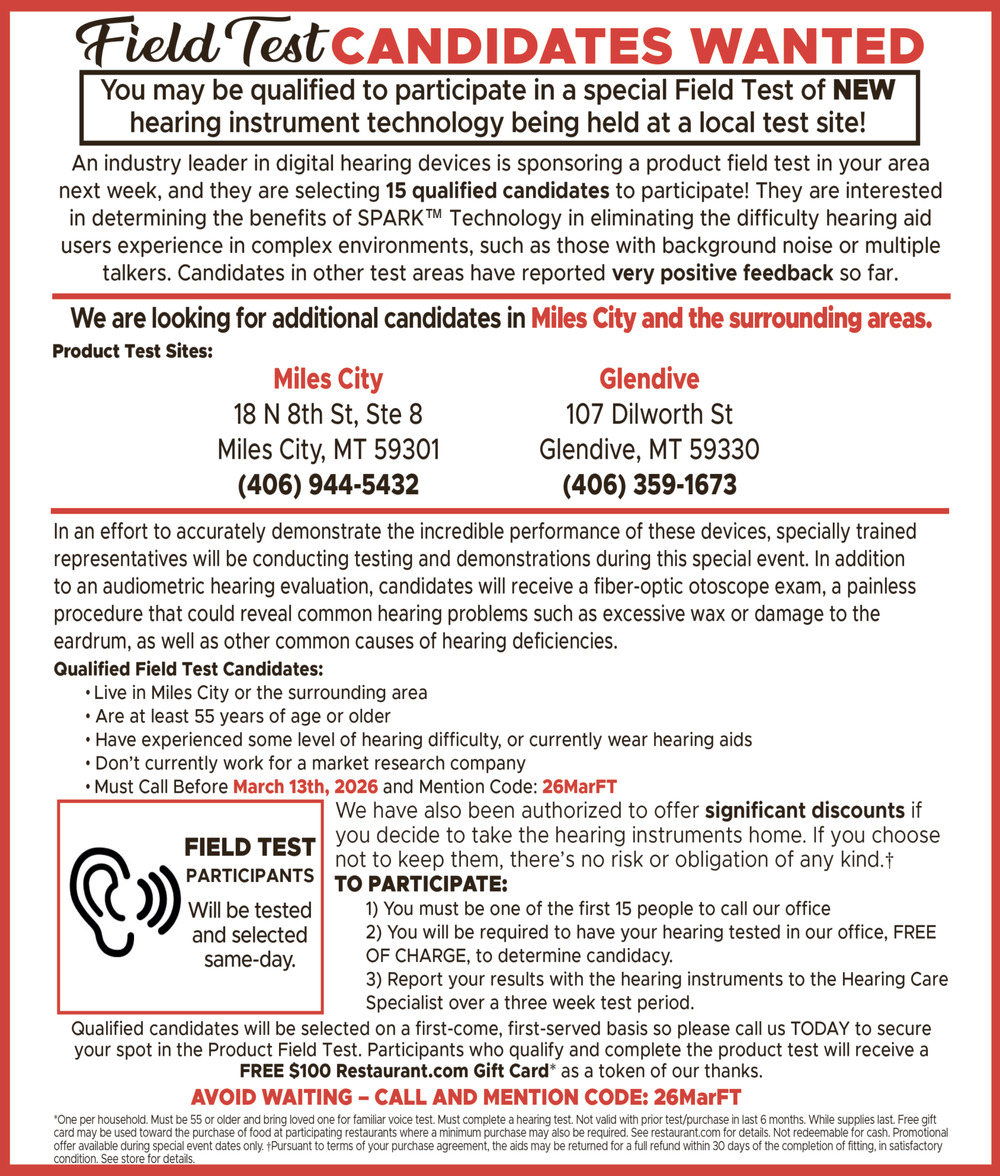 Mar 11, 2026. Miracle-Ear / Miles City - Glendive Medical Ads from The Miles City Star