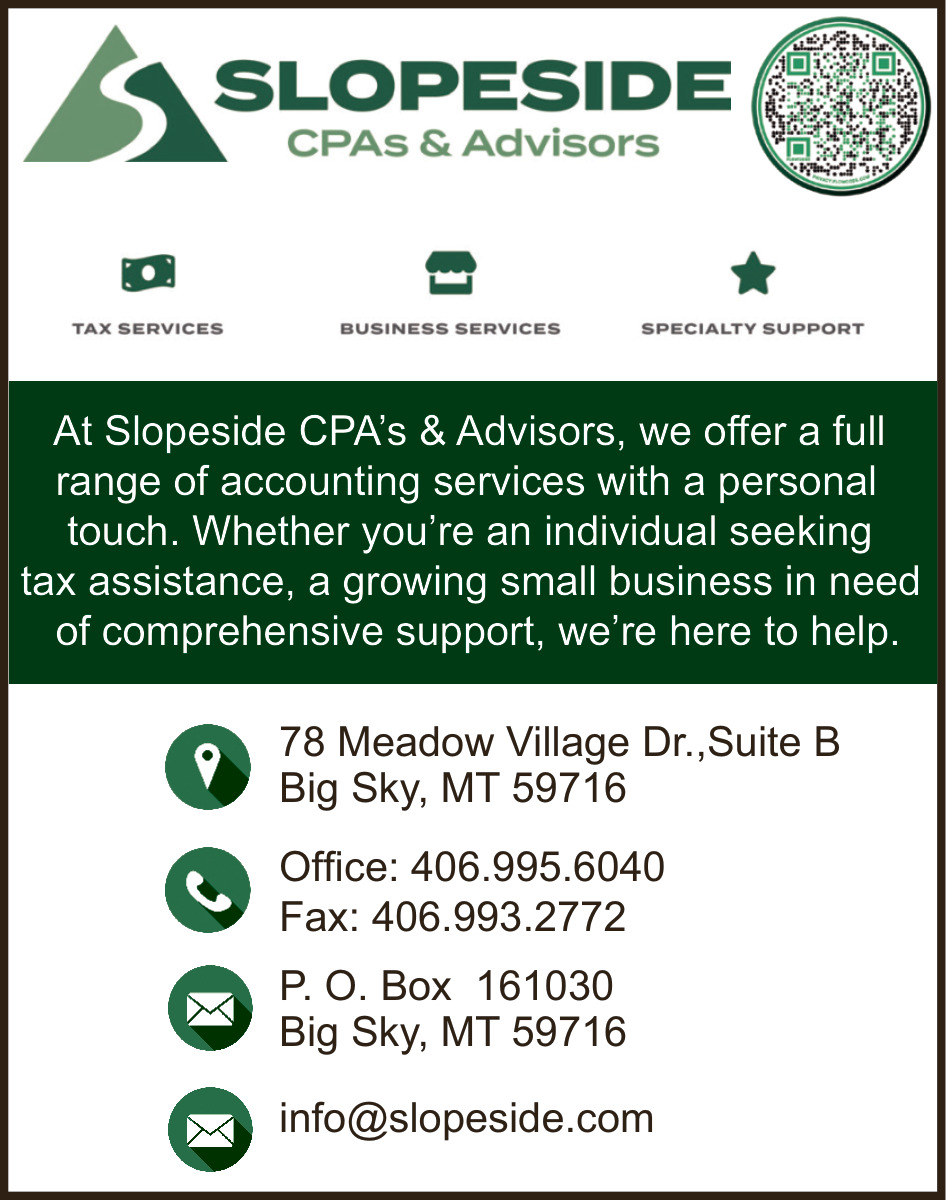 Mar 11, 2026. Slopeside CPAs & Advisors Financial Ads from Livingston Enterprise