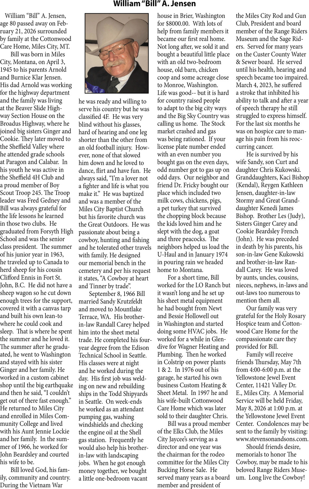 • Obituary in Glendive, MT