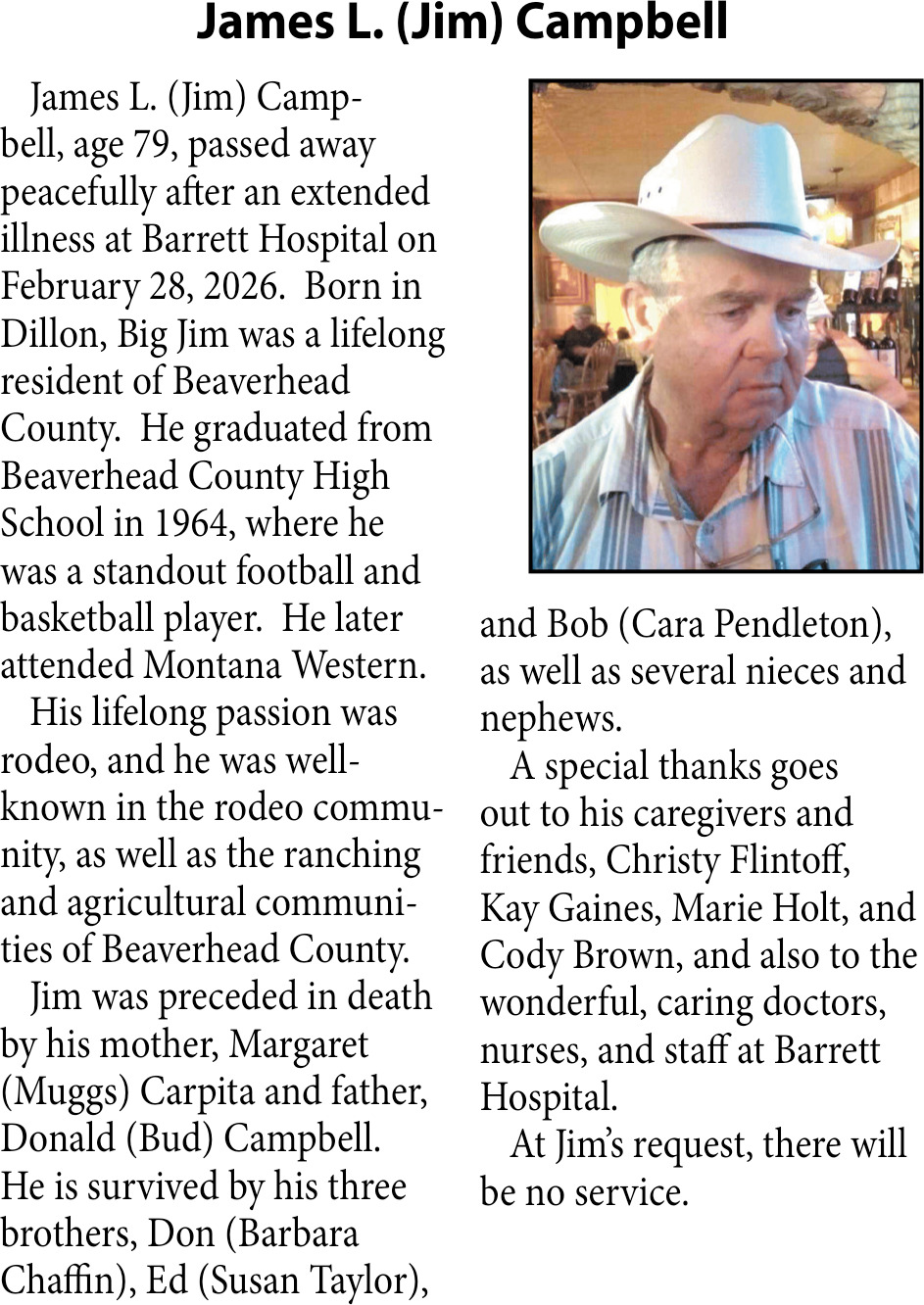 Mar 11, 2026. Obituaries Obituaries Ads from The Dillon Tribune