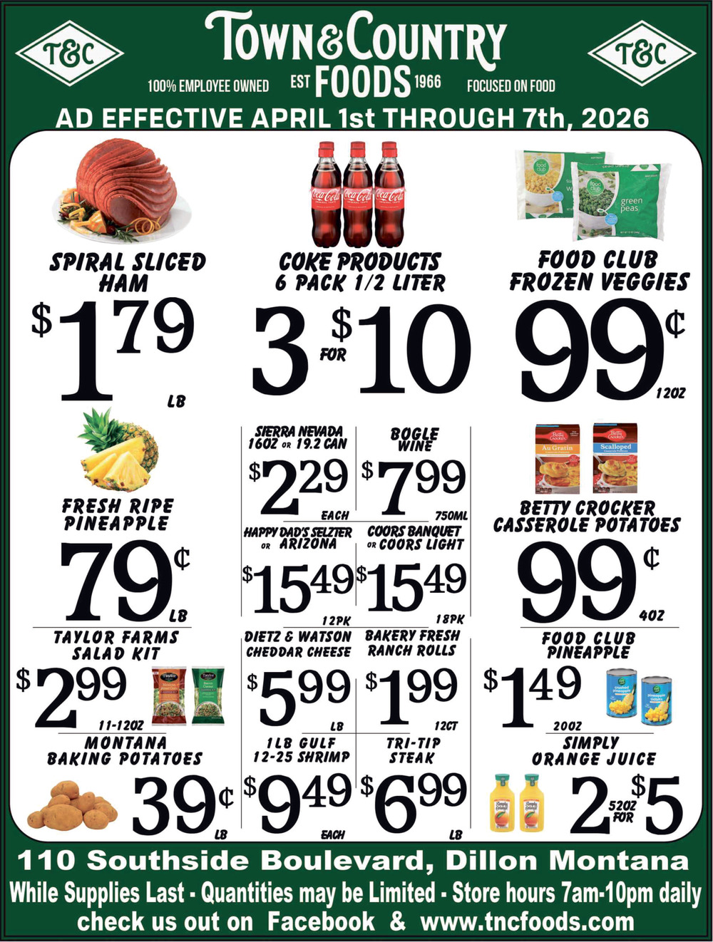 Apr 01, 2026. Town & Country Foods - Dillon Food Ads from The Dillon Tribune