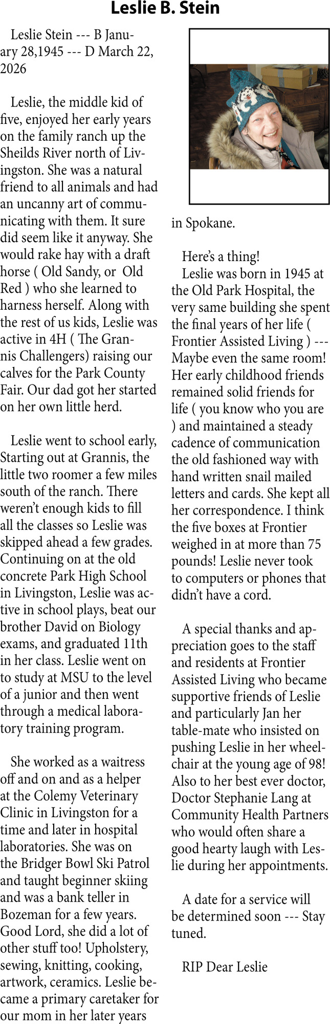 Apr 08, 2026. Obituaries Obituaries Ads from Livingston Enterprise