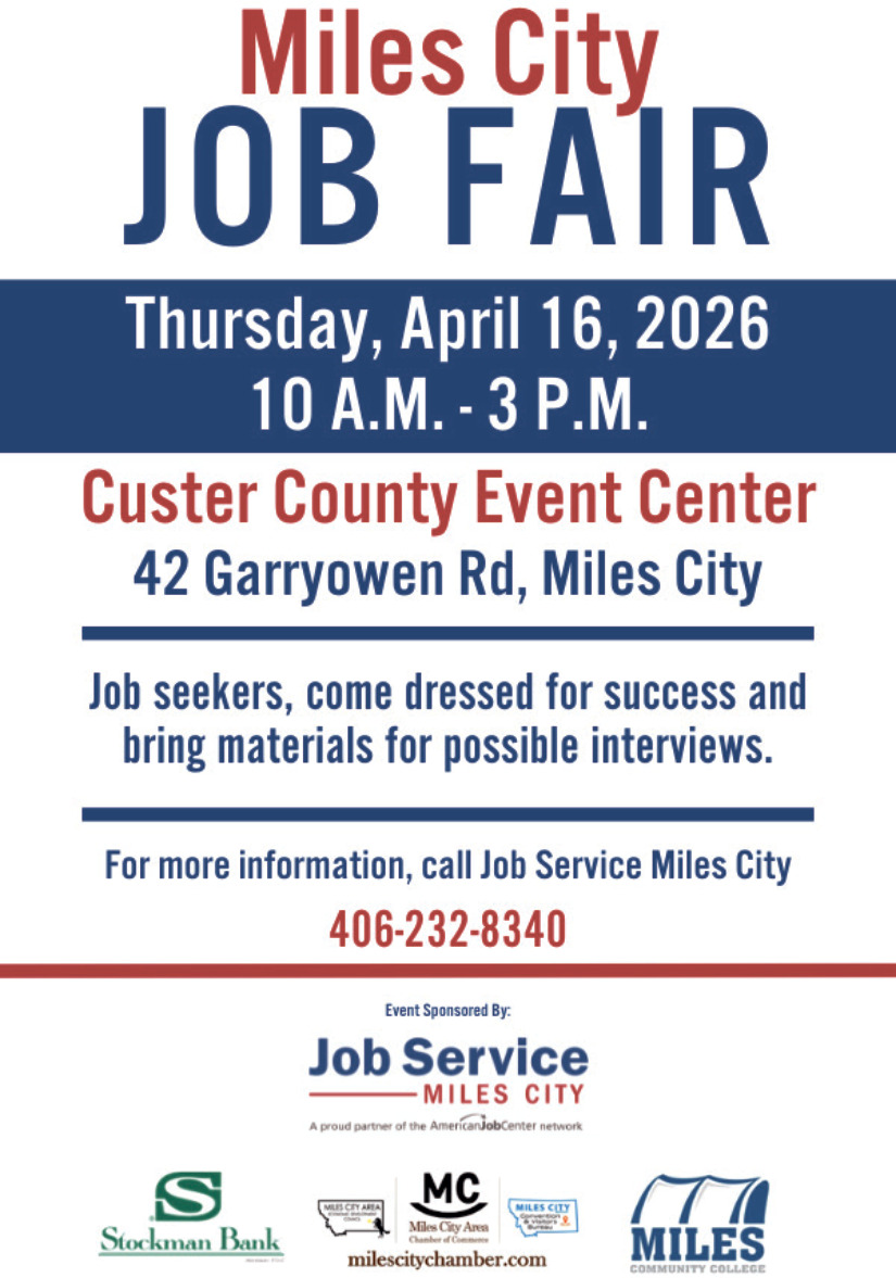 Apr 11, 2026. Miles City Job Fair (April 16, 2026) Job Fairs Ads from The Miles City Star