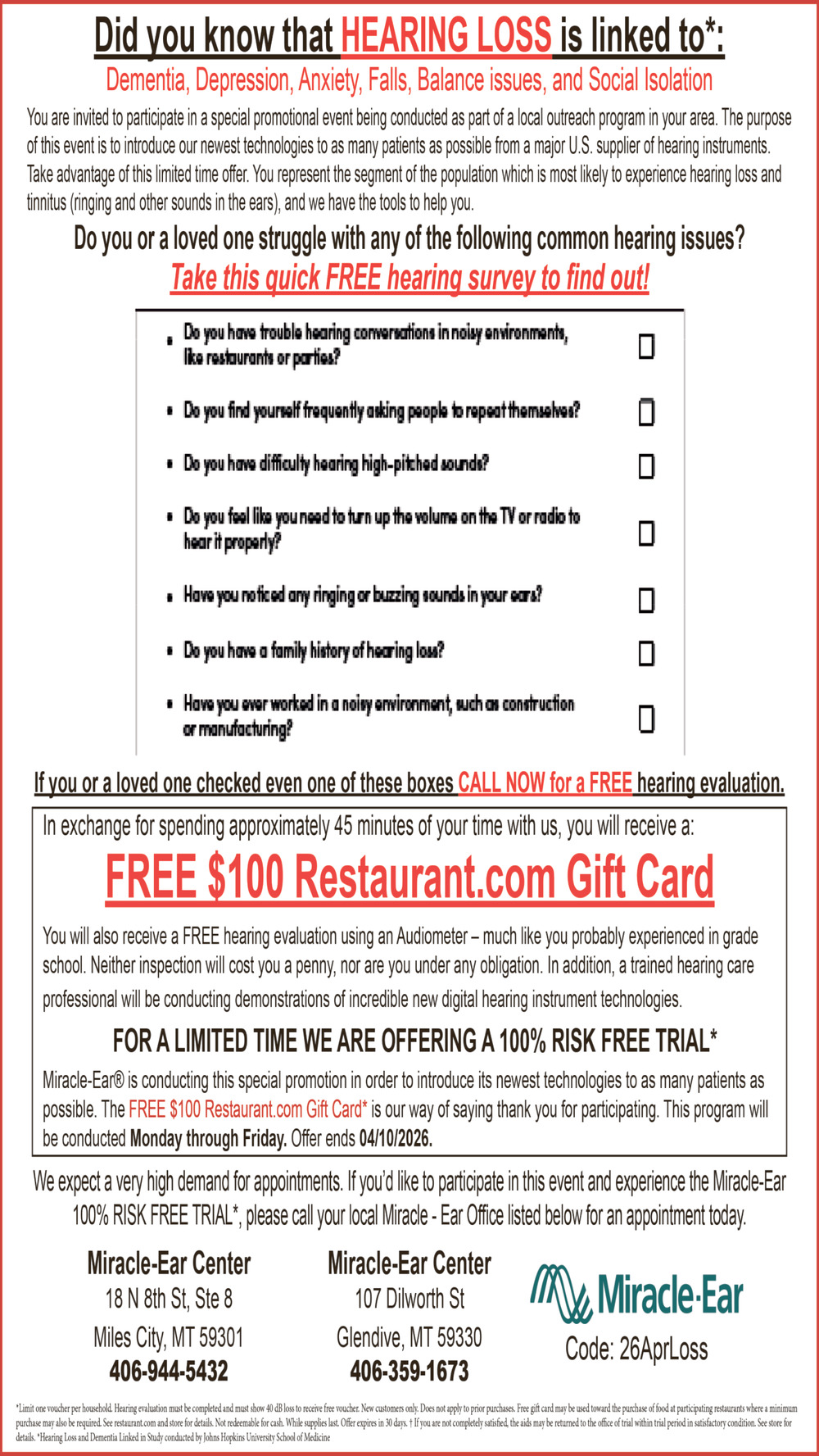 Apr 11, 2026. Miracle-Ear / Miles City - Glendive Medical Ads from The Miles City Star