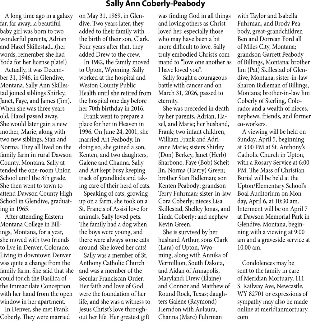 Apr 11, 2026. Obituaries Obituaries Ads from The Glendive Ranger-Review
