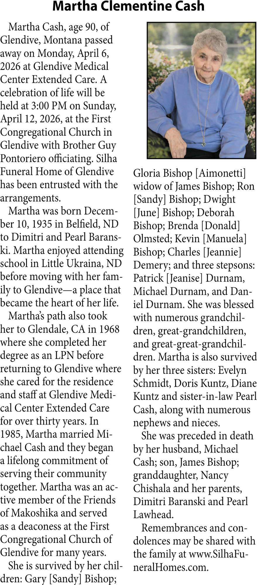 • Obituary in Glendive, MT