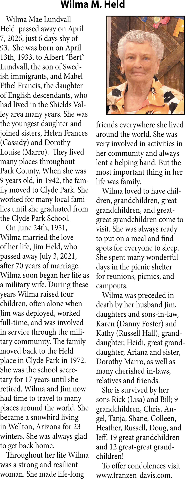 Apr 15, 2026. Obituaries Obituaries Ads from Livingston Enterprise
