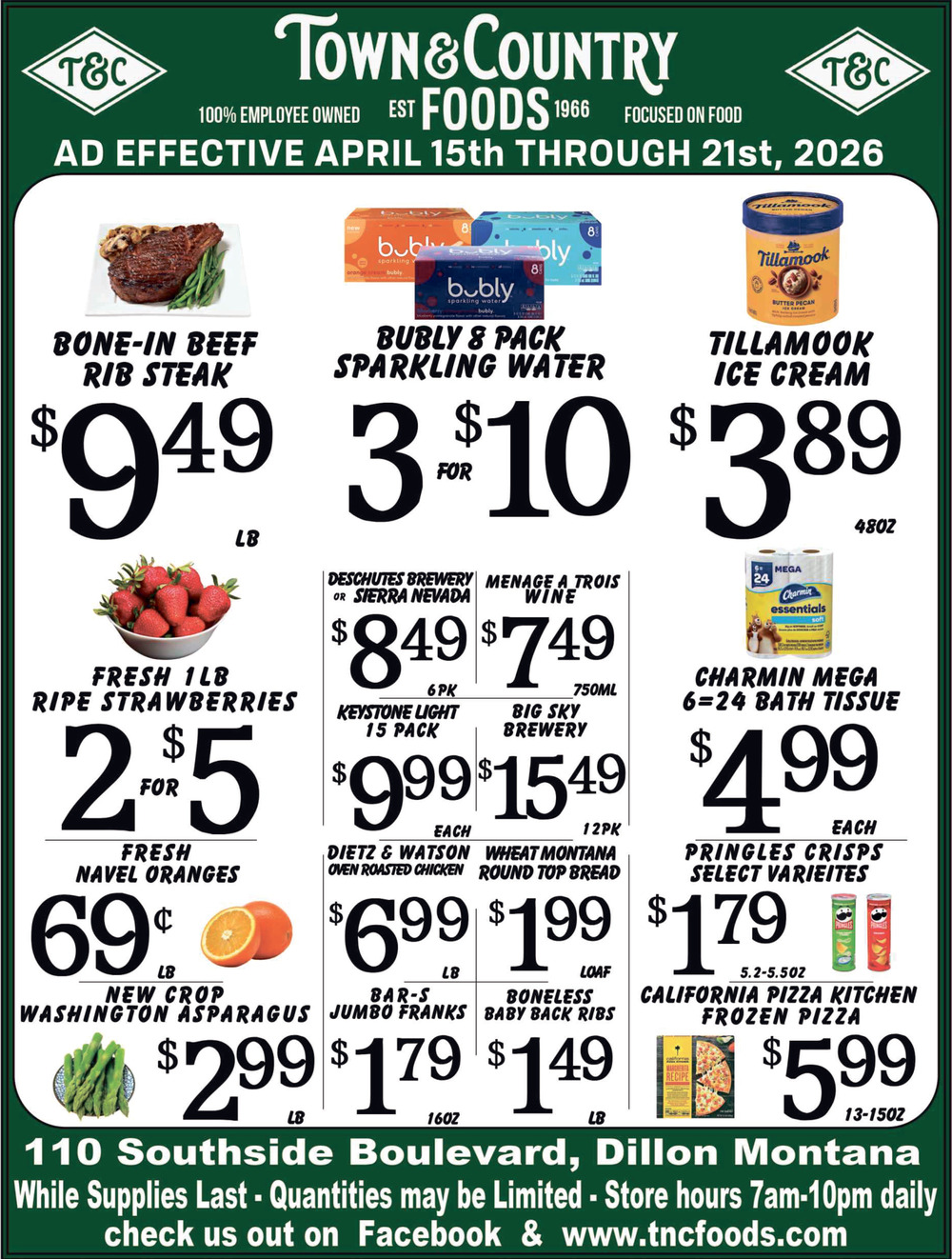 Apr 15, 2026. Town & Country Foods - Dillon Food Ads from The Dillon Tribune