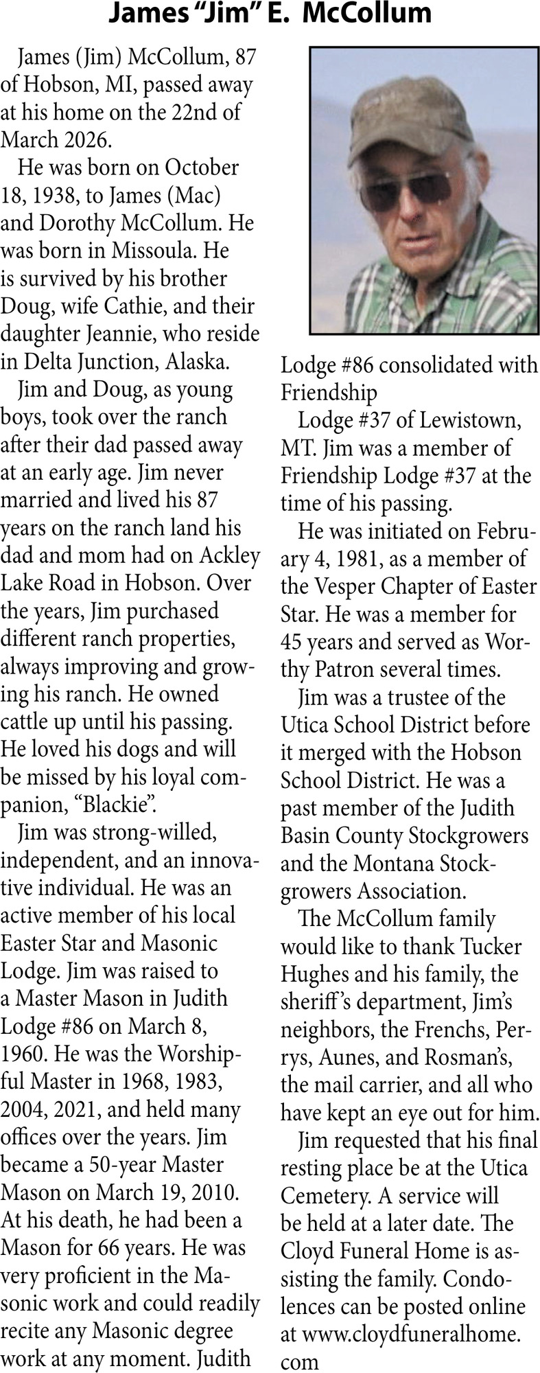 Apr 18, 2026. Obituaries Obituaries Ads from The Judith Basin Press