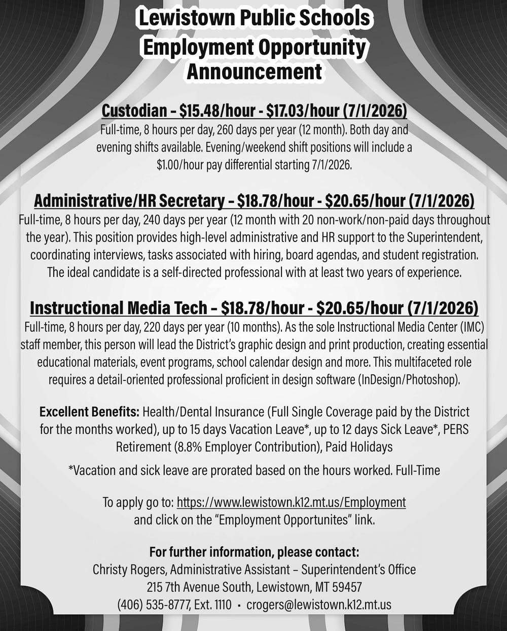 Apr 18, 2026. Lewistown Public Schools Jobs Ads from Lewistown News-Argus