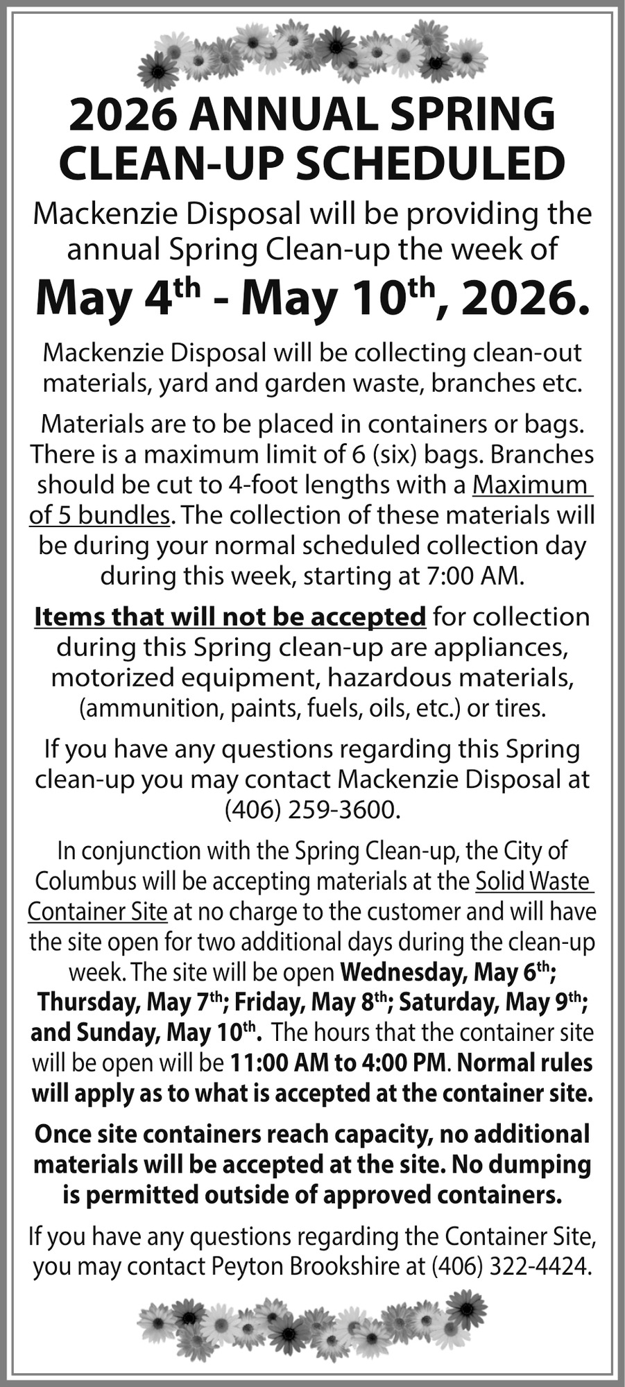 Apr 23, 2026. City of Columbus Public Notice Ads from The Stillwater County News