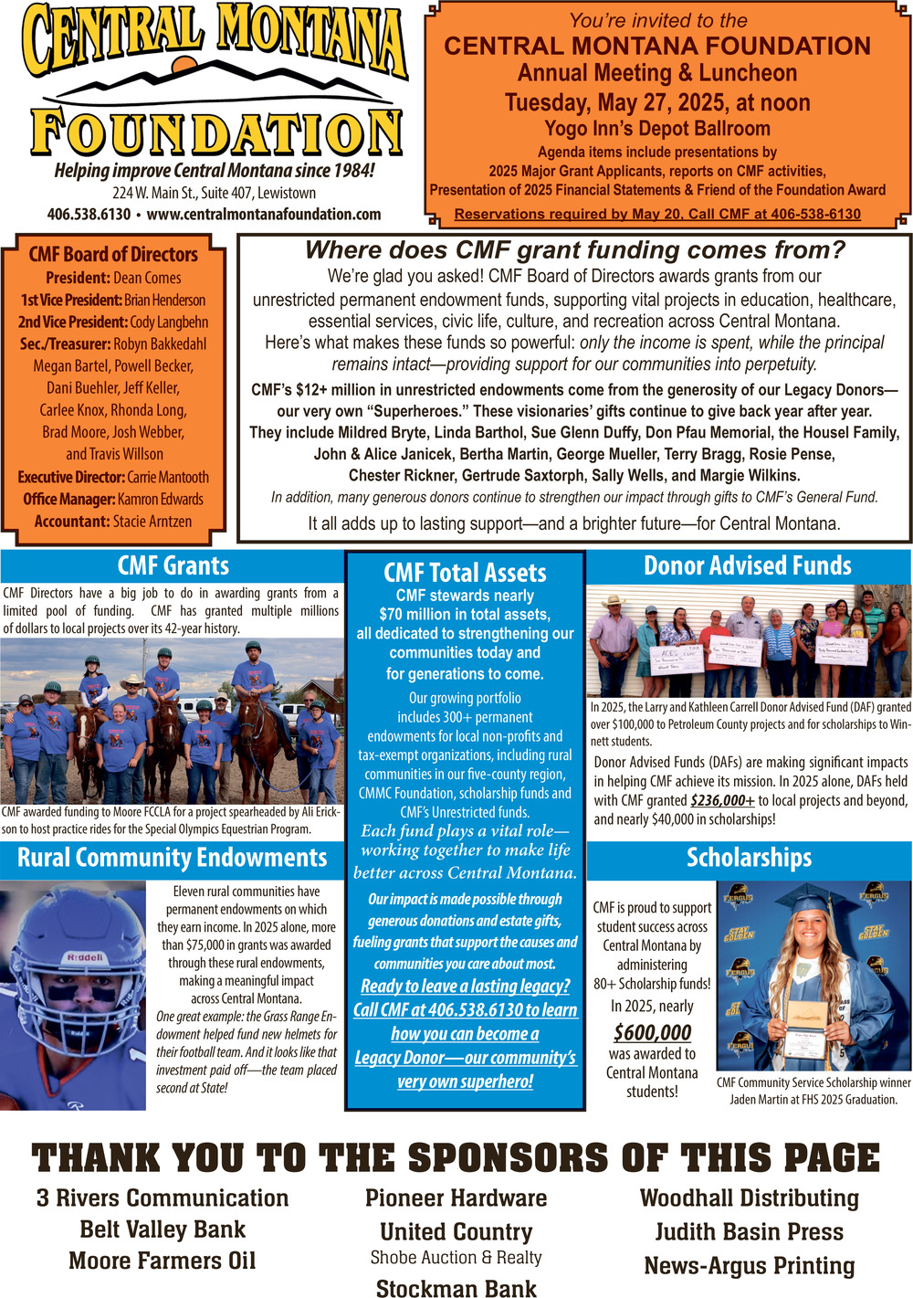 Apr 25, 2026. Central Montana Foundation Organization Ads from The Judith Basin Press