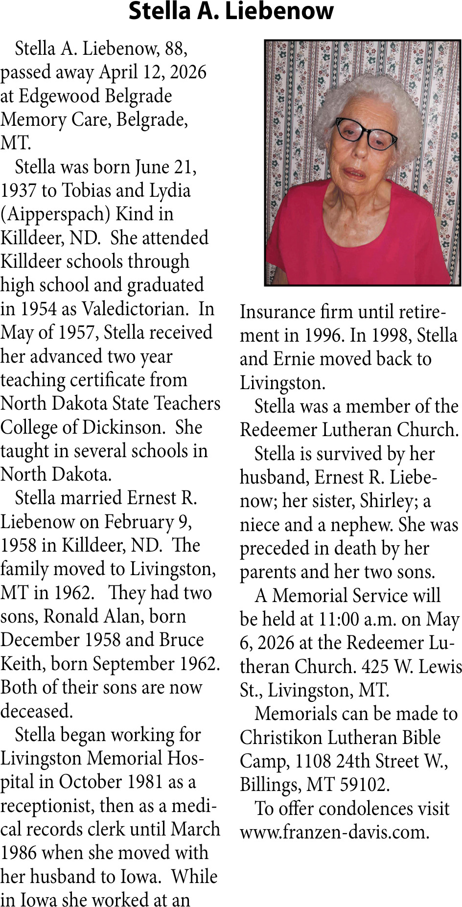 Apr 25, 2026. Obituaries Obituaries Ads from Livingston Enterprise