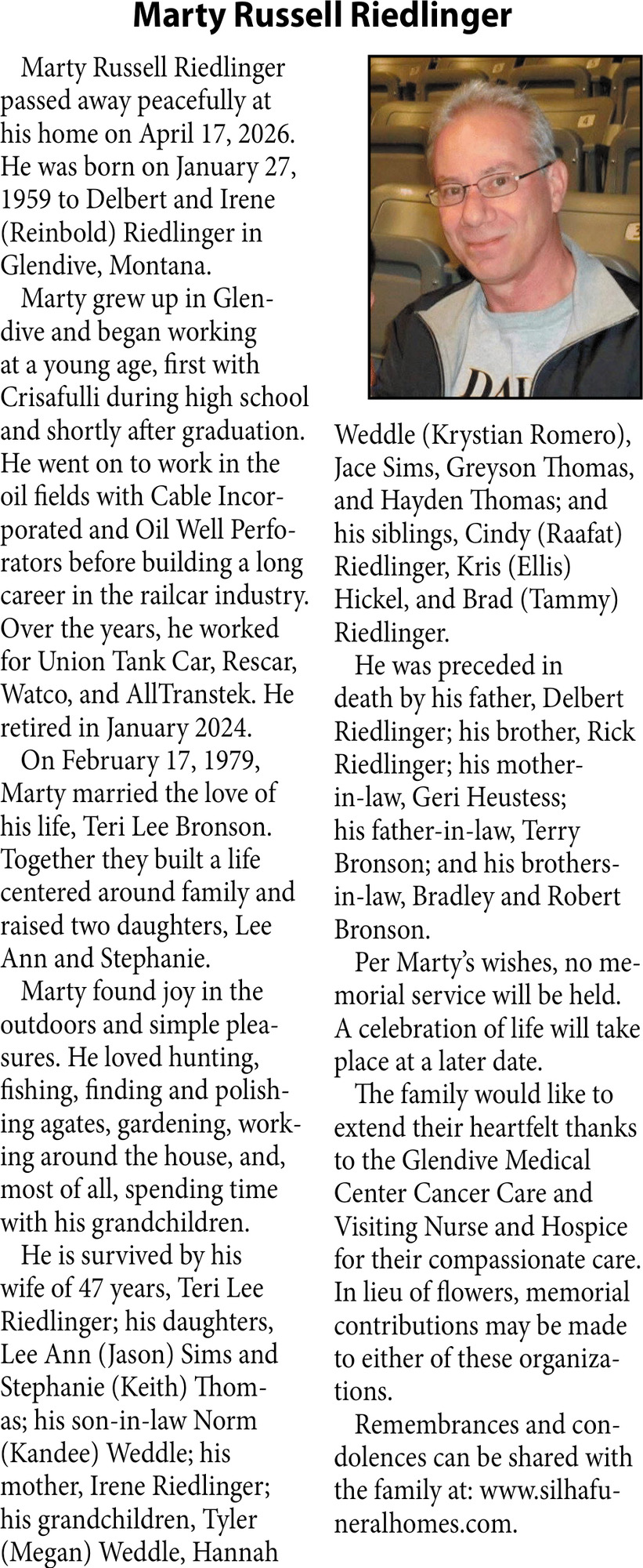 • Obituary in Glendive, MT