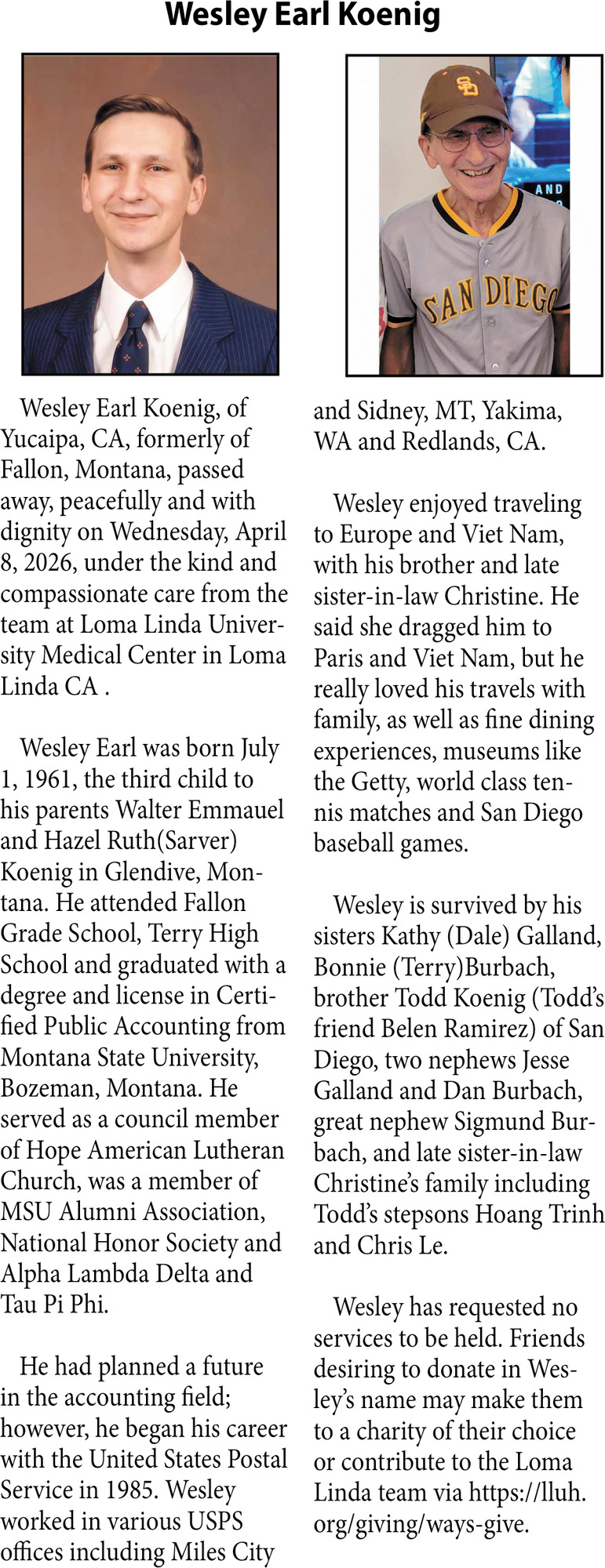 Apr 25, 2026. Obituaries Obituaries Ads from The Glendive Ranger-Review