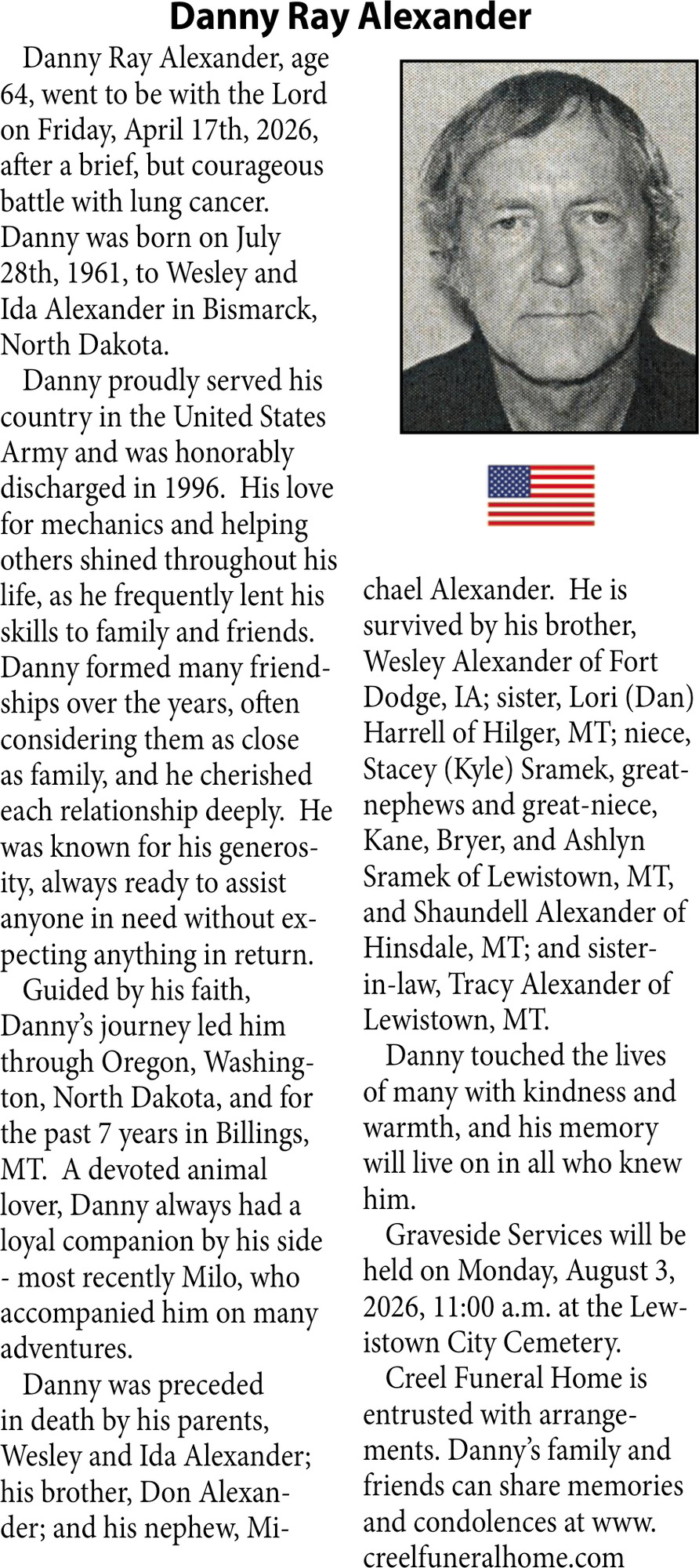 Apr 25, 2026. Obituaries Obituaries Ads from Lewistown News-Argus