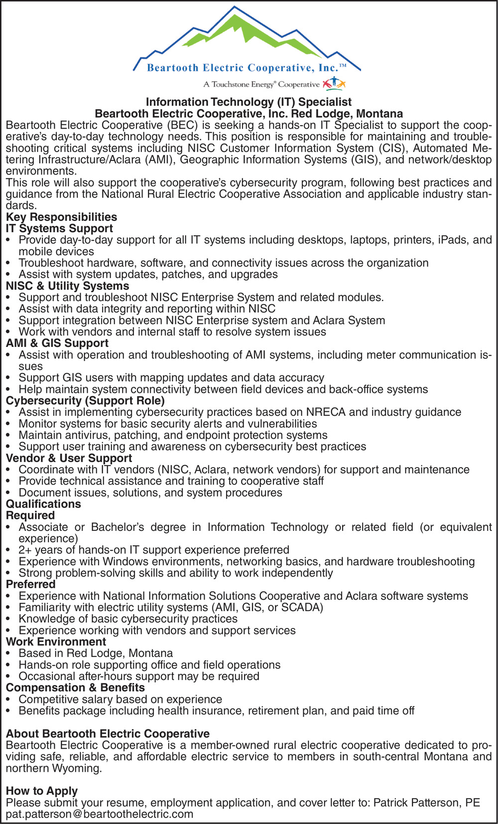 Apr 30, 2026. Beartooth Electric Cooperative, Inc. Jobs Ads from The Carbon County News