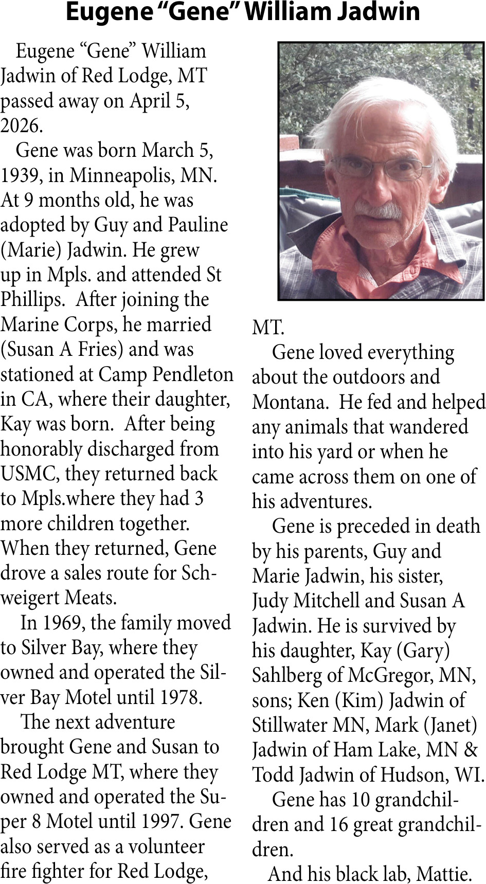 • Obituary in Glendive, MT