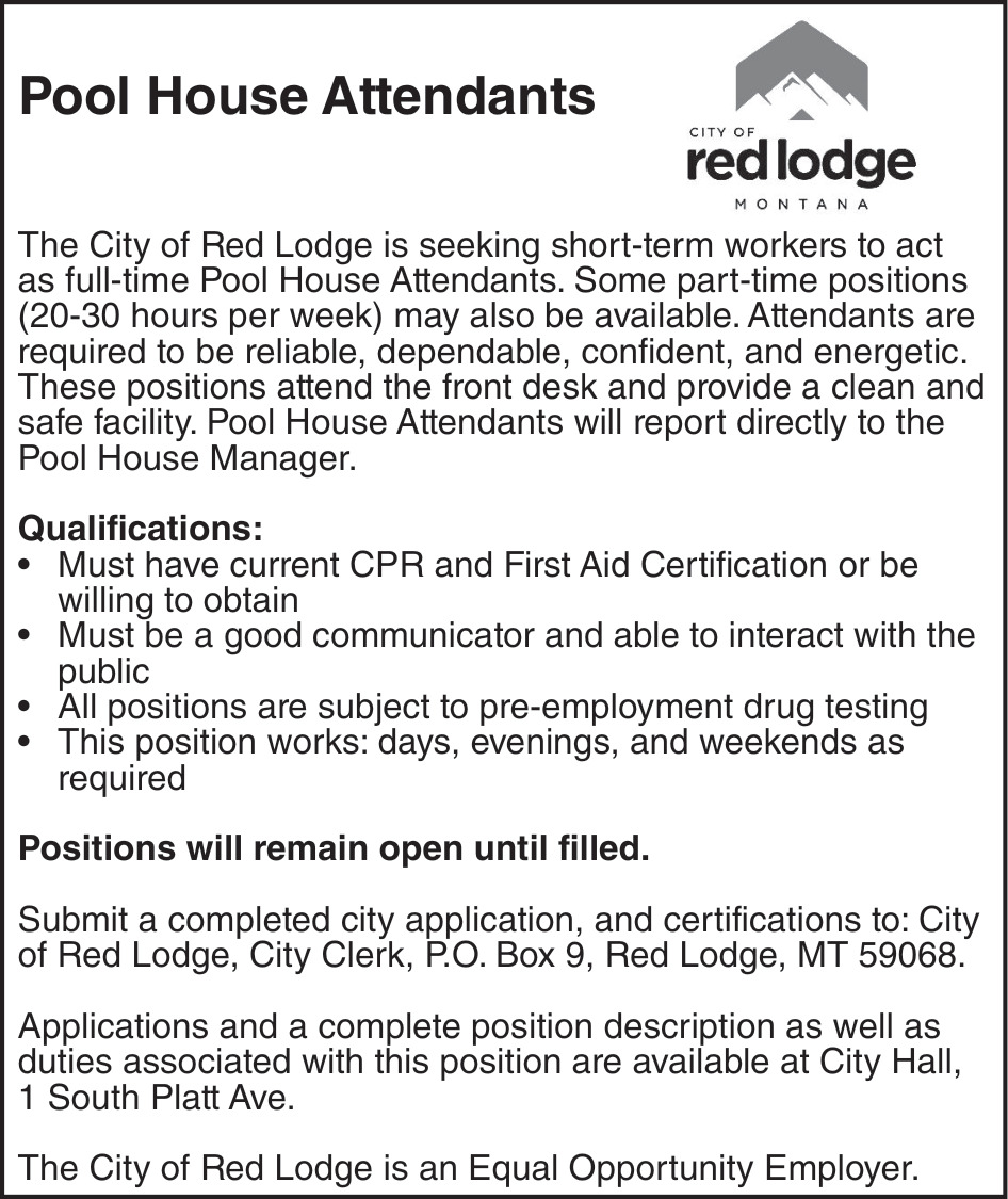 Apr 30, 2026. City of Red Lodge Jobs Ads from The Carbon County News