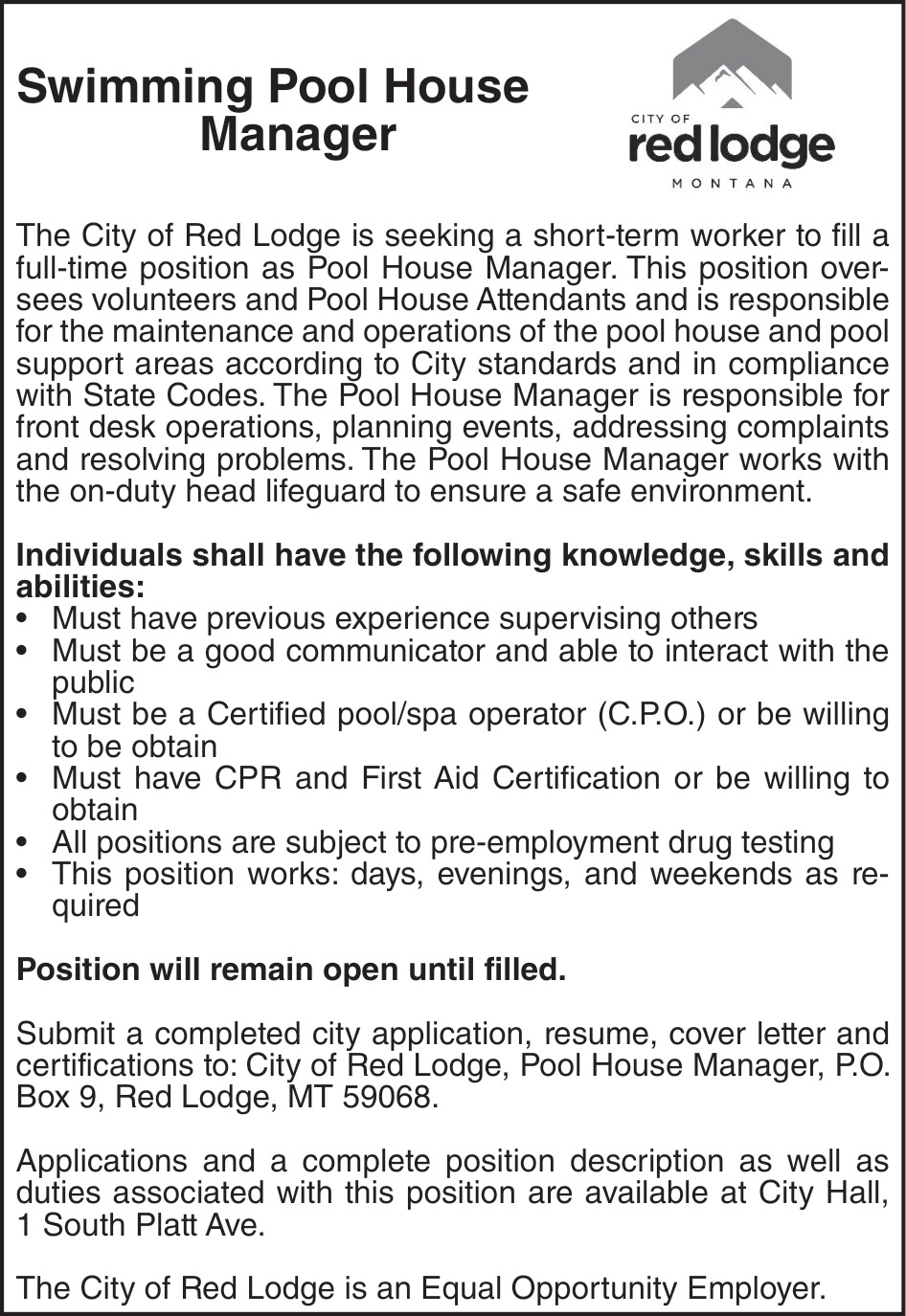 Apr 30, 2026. City of Red Lodge Jobs Ads from The Carbon County News