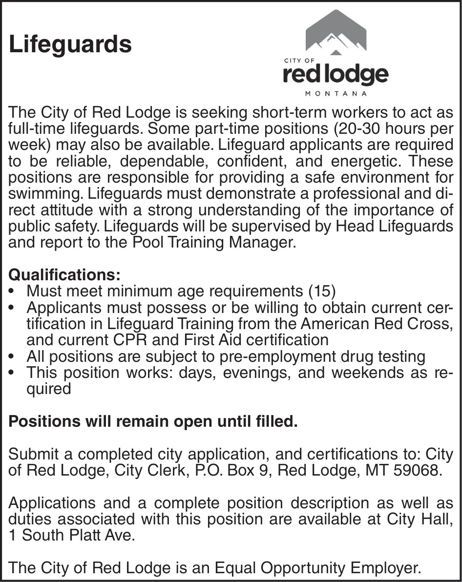 Apr 30, 2026. City of Red Lodge Jobs Ads from The Carbon County News