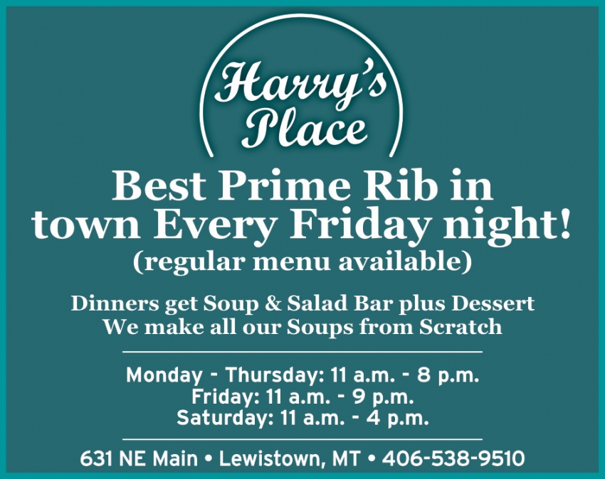 Sep 25, 2024. Harry's Place Restaurant Ads from Lewistown News-Argus